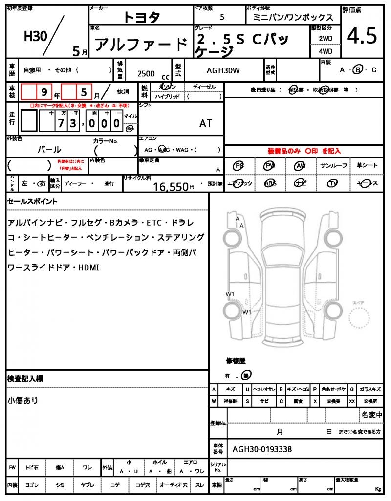| VIN/Serial No. | AGH30-0193338 |