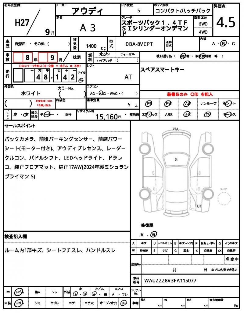 | VIN/Serial No. | WAUZZZ8V3FA115077 |