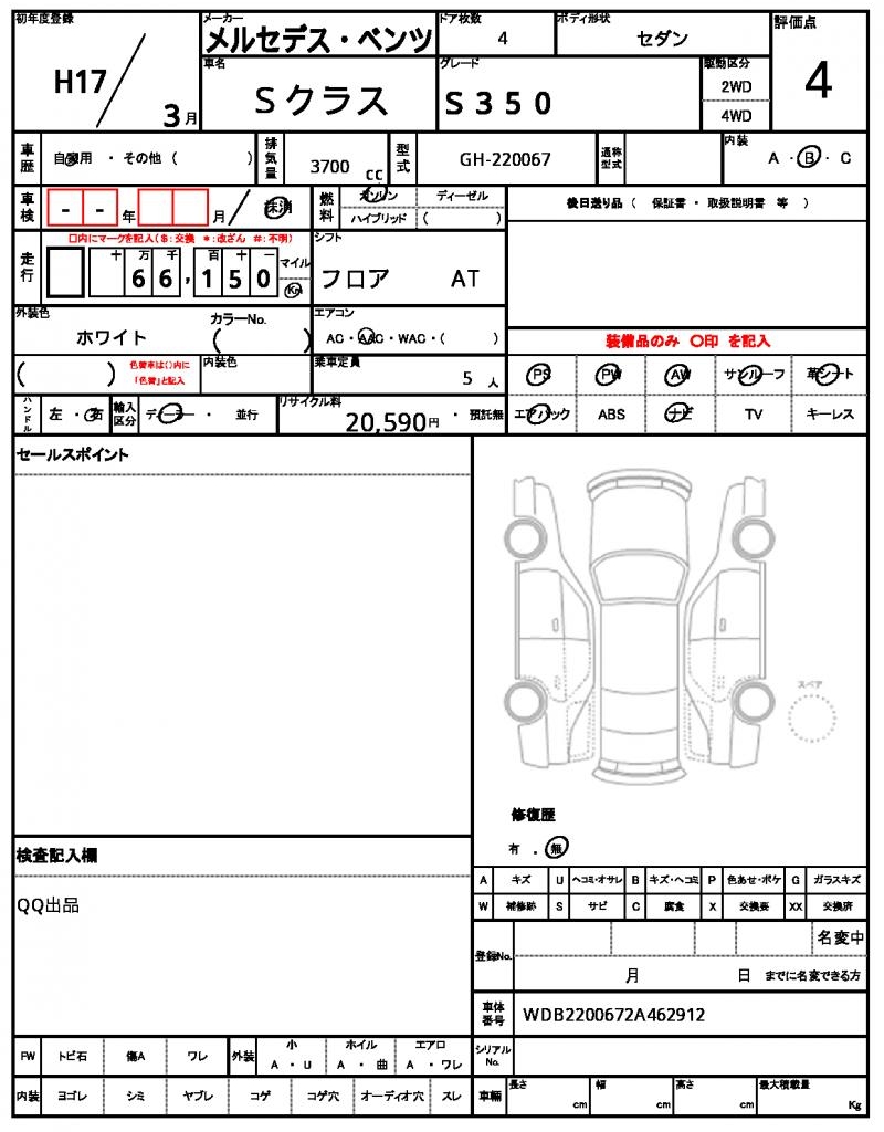 | VIN/Serial No. | WDB2200672A462912 |