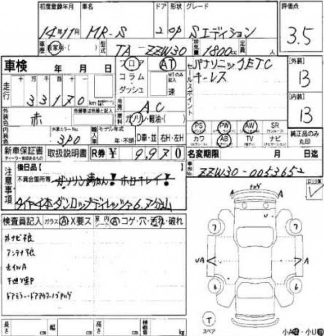 | VIN/Serial No. | ZZW30-0053652 |