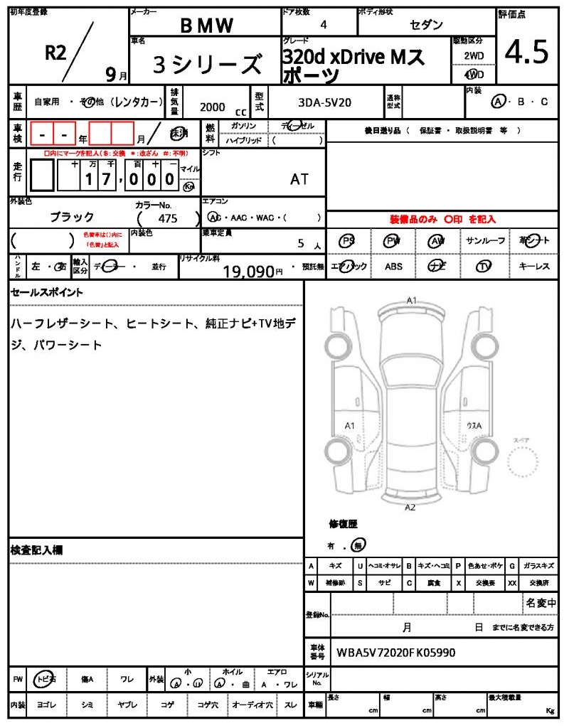 | VIN/Serial No. | WBA5V72020FK05990 |