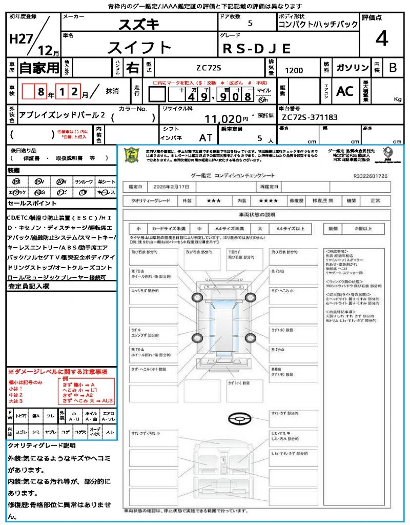 | VIN/Serial No. | ZC72S-371183 |