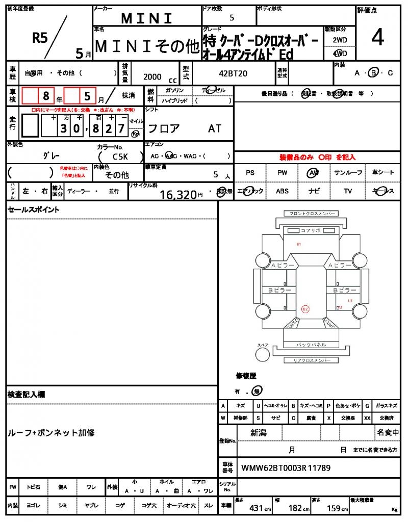 | VIN/Serial No. | WMW62BT0003R11789 |