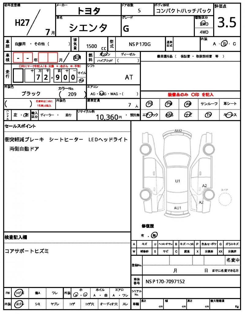 | VIN/Serial No. | NSP170-7097152 |