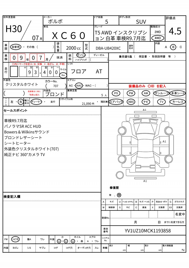 | Odometer | 93400km |