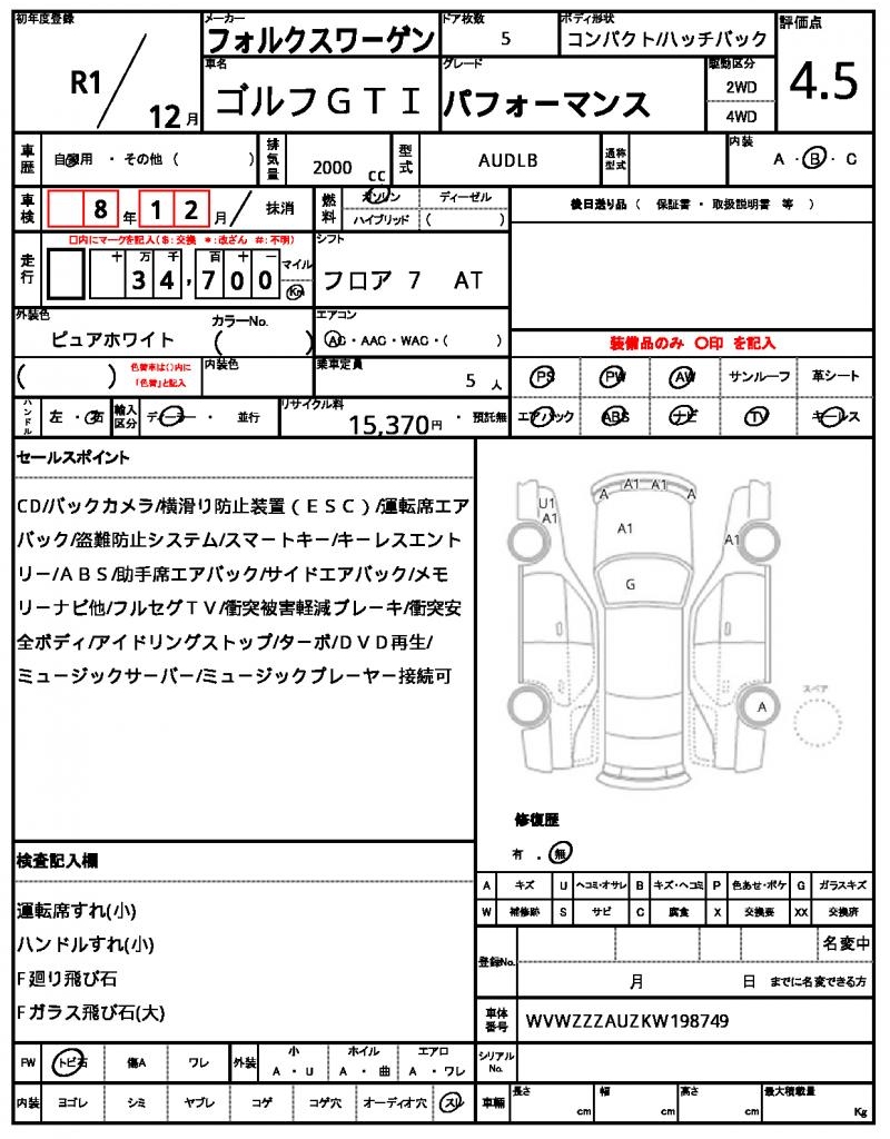 | VIN/Serial No. | WVWZZZAUZKW198749 |
