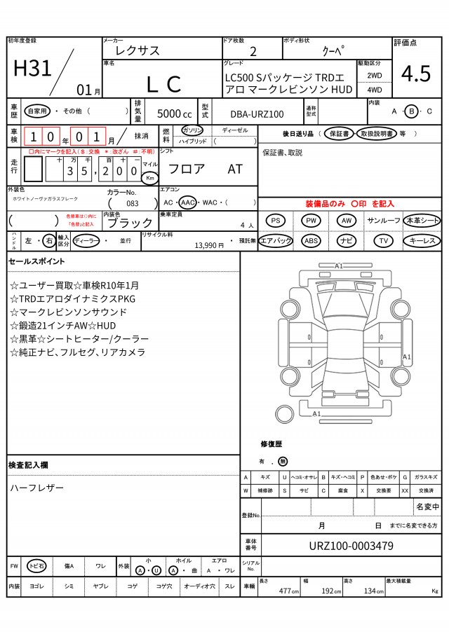 | VIN/Serial No. | URZ100-0003479 |