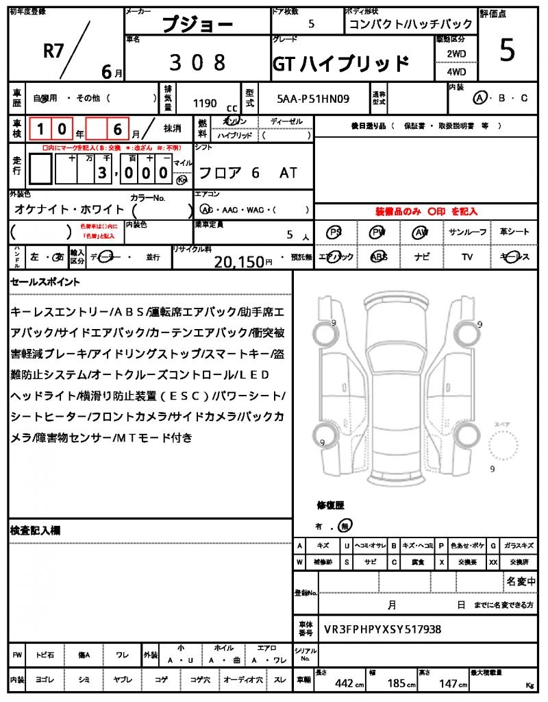 | VIN/Serial No. | VR3FPHPYXSY517938 |