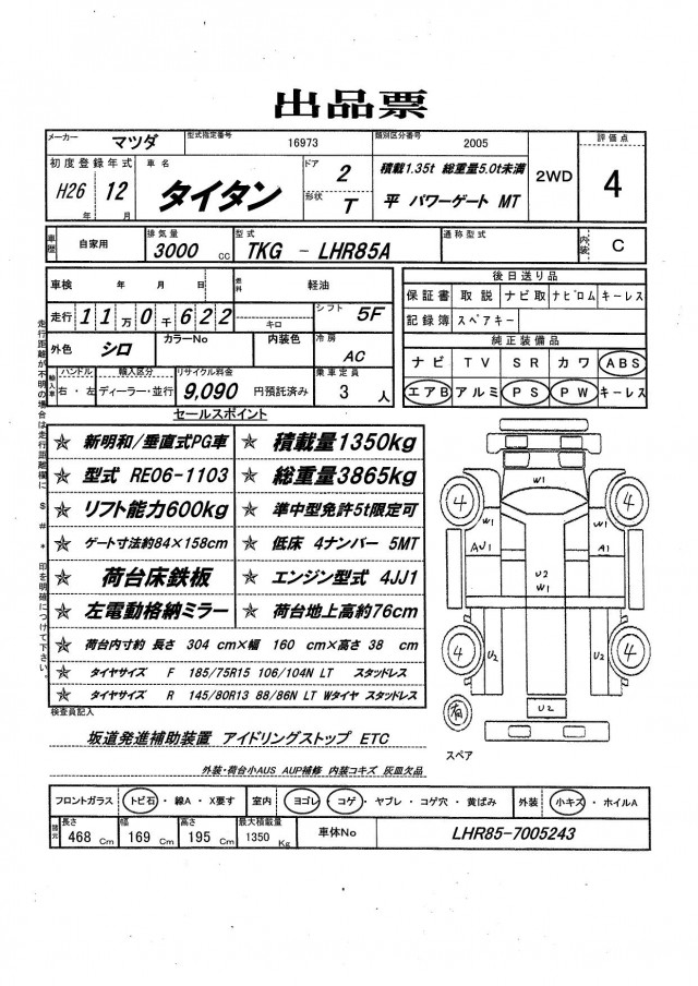 | VIN/Serial No. | LHR85-7005243 |