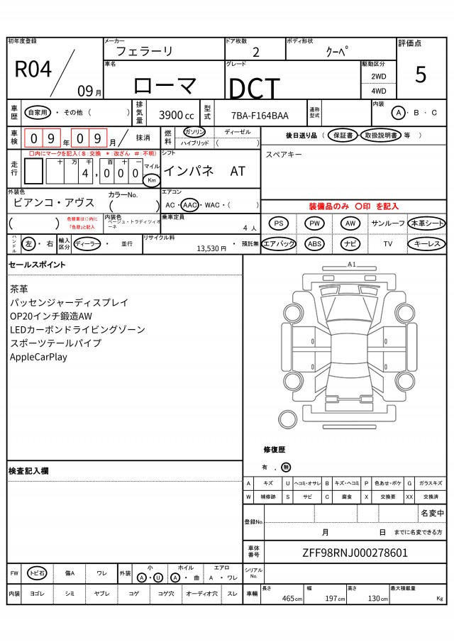 | VIN/Serial No. | ZFF98RNJ000278601 |
