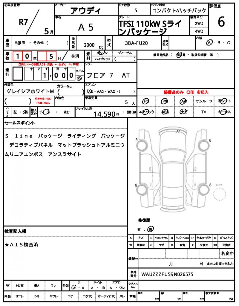 VIN/Serial No. WAUZZZFU5SN026575