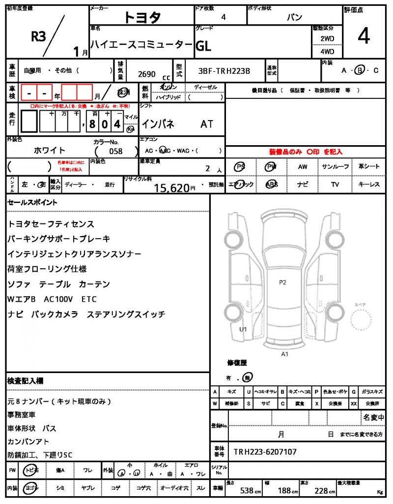 | VIN/Serial No. | TRH223-6207107 |