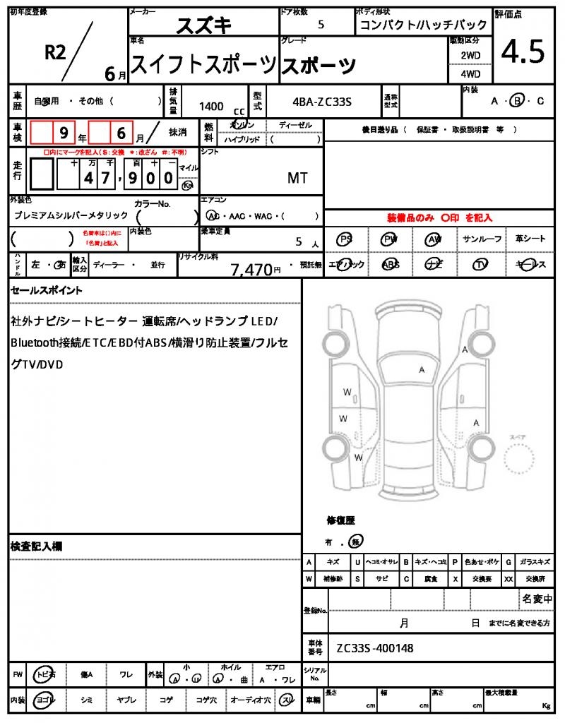 | Model code | 4BA-ZC33S |