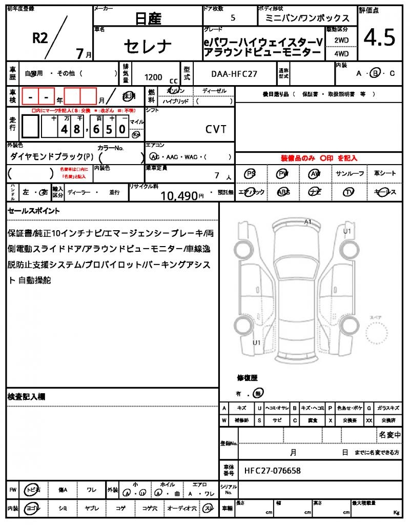 | VIN/Serial No. | HFC27-076658 |