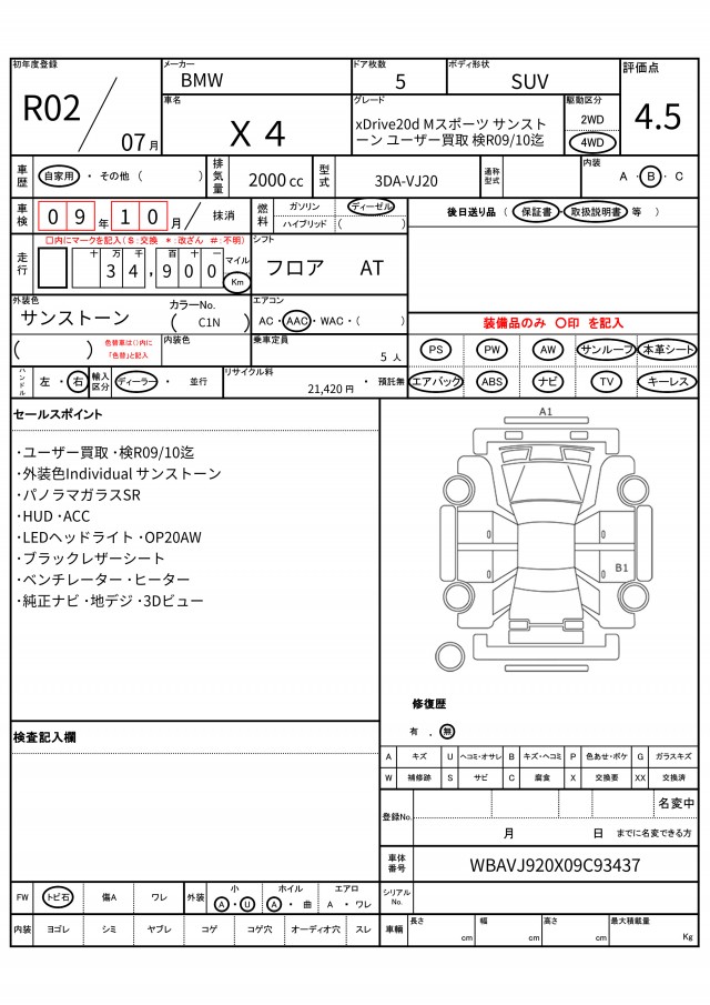 | VIN/Serial No. | WBAVJ920X09C93437 |