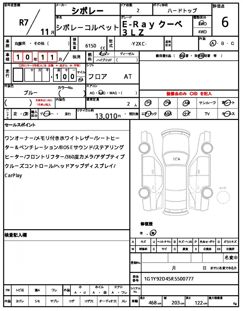 | VIN/Serial No. | 1G1Y92D45R5500777 |