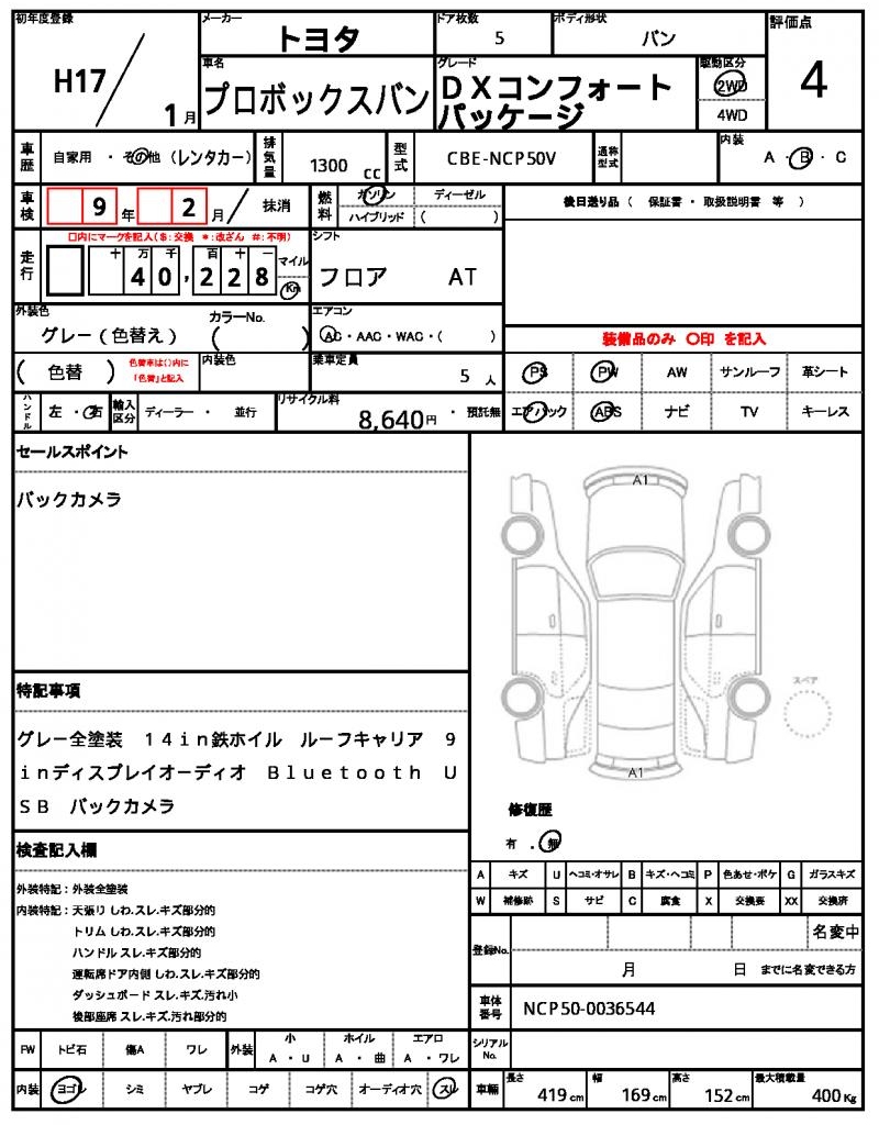 | VIN/Serial No. | NCP50-0036544 |