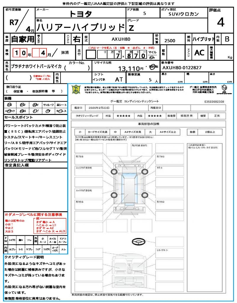 | VIN/Serial No. | AXUH80-0122827 |