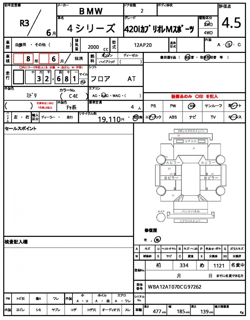| VIN/Serial No. | WBA12AT070CG97262 |