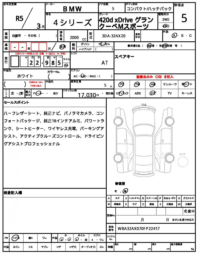 | VIN/Serial No. | WBA32AX070FP22417 |