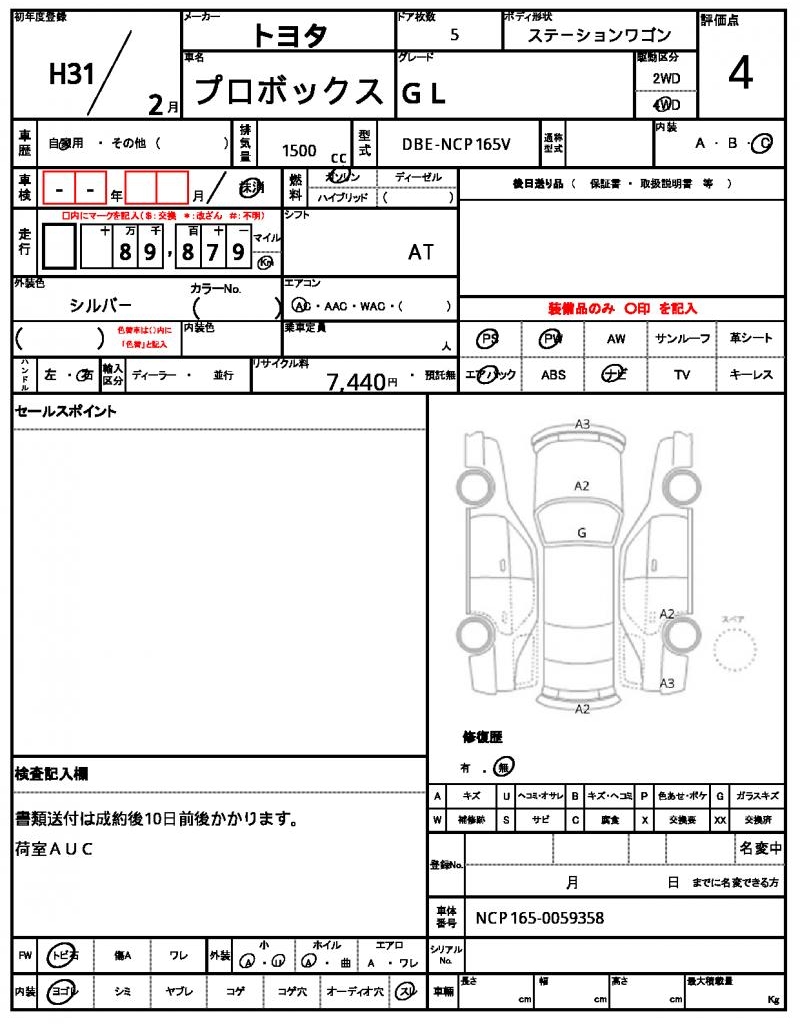 | VIN/Serial No. | NCP165-0059358 |