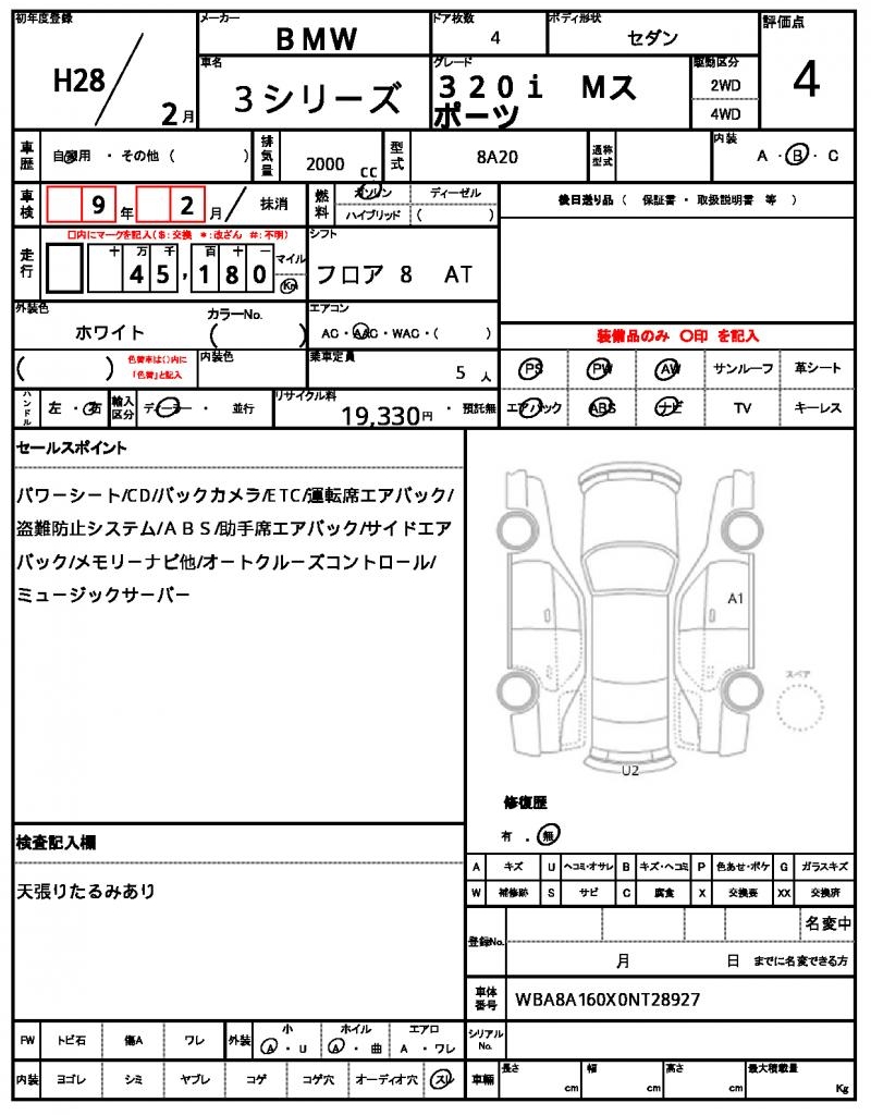 VIN/Serial No. WBA8A160X0NT28927