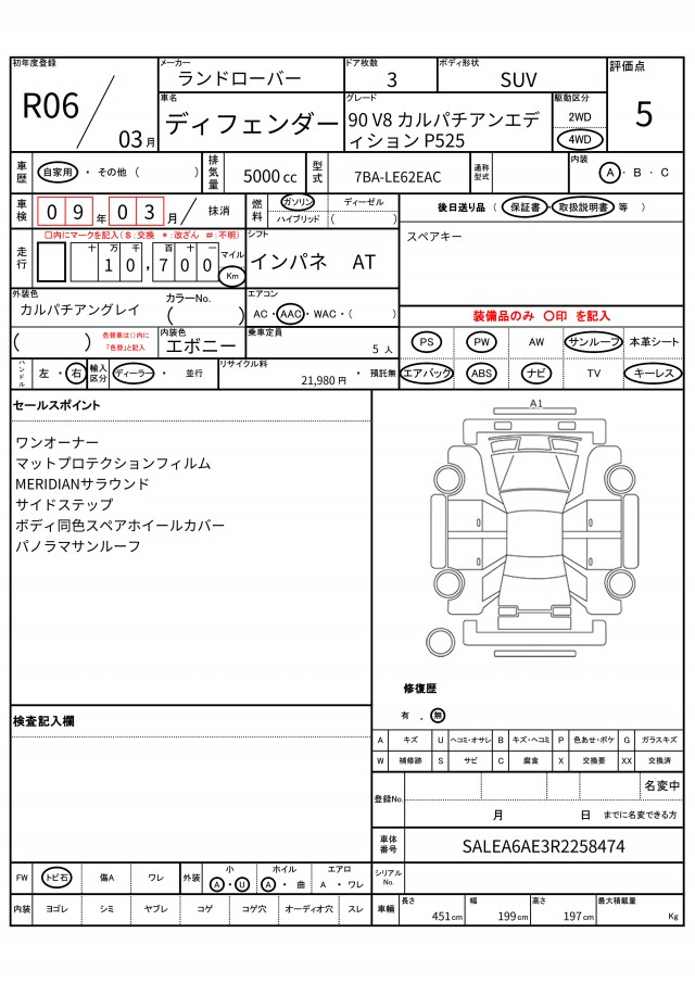 | VIN/Serial No. | SALEA6AE3R2258474 |