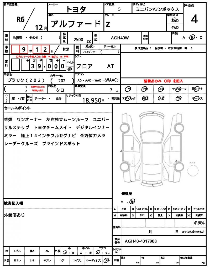 | VIN/Serial No. | AGH40-4017908 |