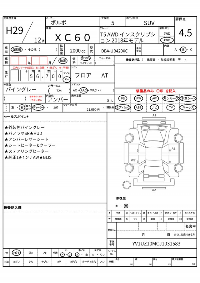 | VIN/Serial No. | YV1UZ10MCJ1031583 |