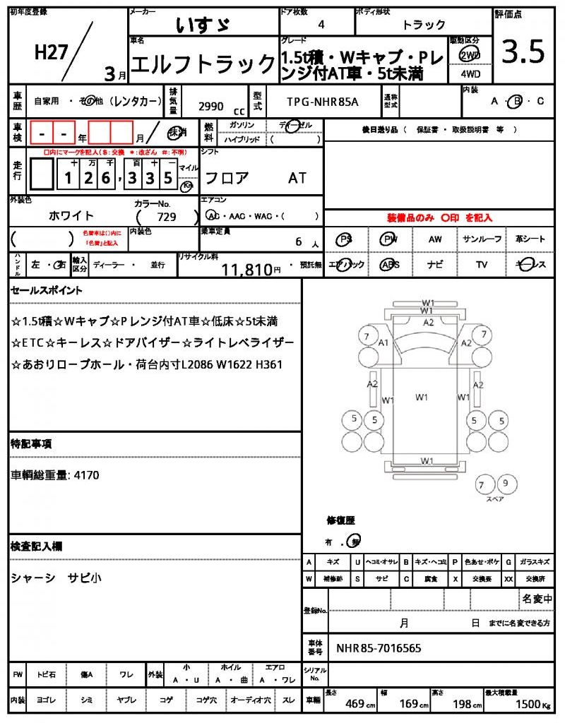 | VIN/Serial No. | NHR85-7016565 |