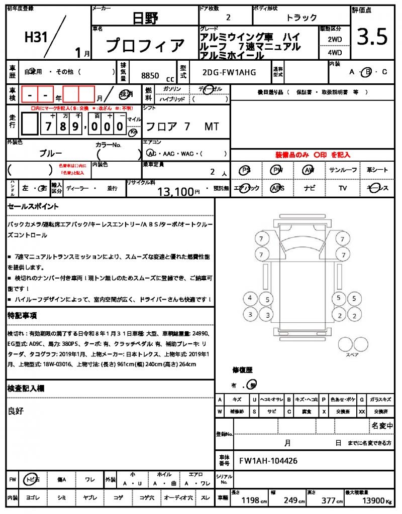 VIN/Serial No. FW1AH-104426