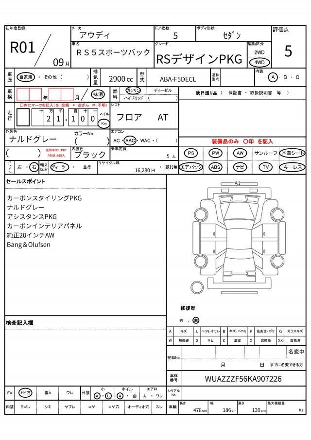 | VIN/Serial No. | WUAZZZF56KA907226 |