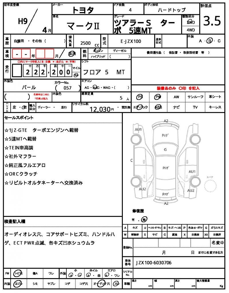 | VIN/Serial No. | JZX100-6030706 |