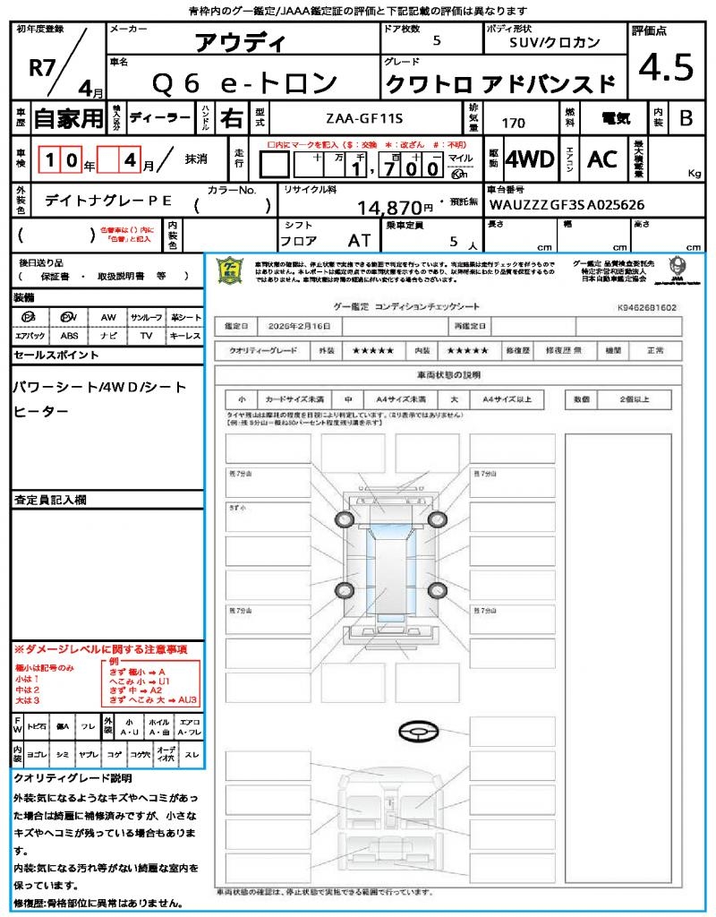| VIN/Serial No. | WAUZZZGF3SA025626 |