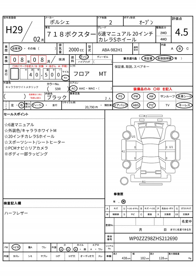 | VIN/Serial No. | WP0ZZZ98ZHS212690 |