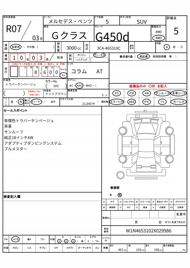 | VIN/Serial No. | W1N4653102X029986 |
