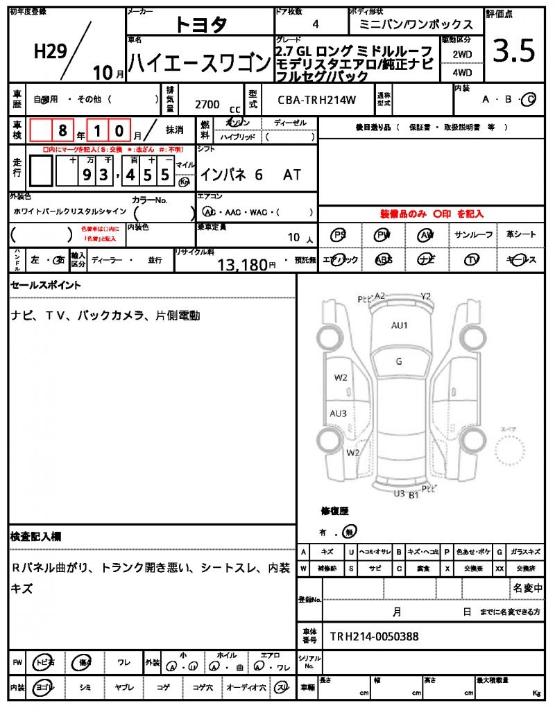 | VIN/Serial No. | TRH214-0050388 |