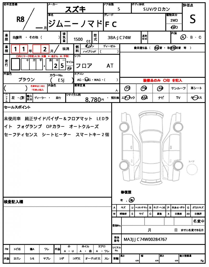 | VIN/Serial No. | MA3JJC74W00284767 |