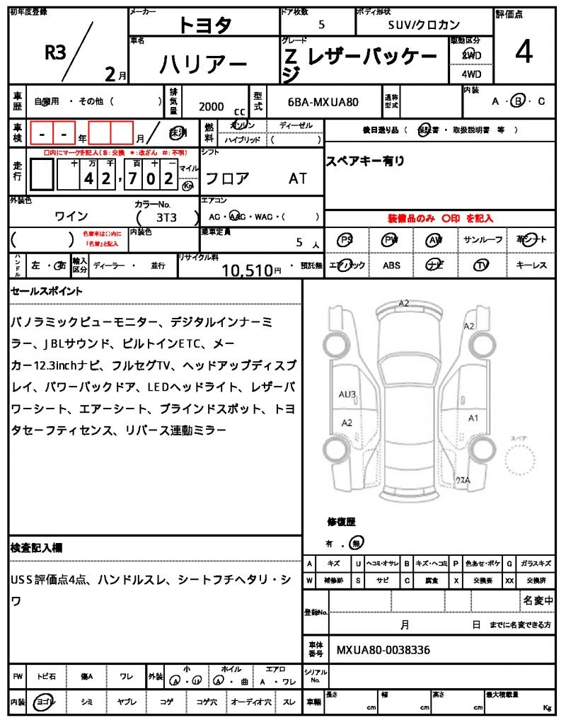 | VIN/Serial No. | MXUA80-0038336 |