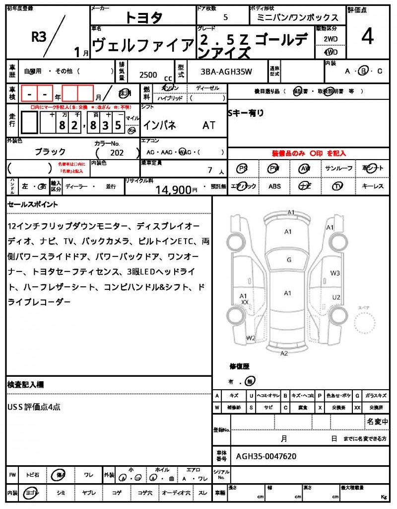 | VIN/Serial No. | AGH35-0047620 |