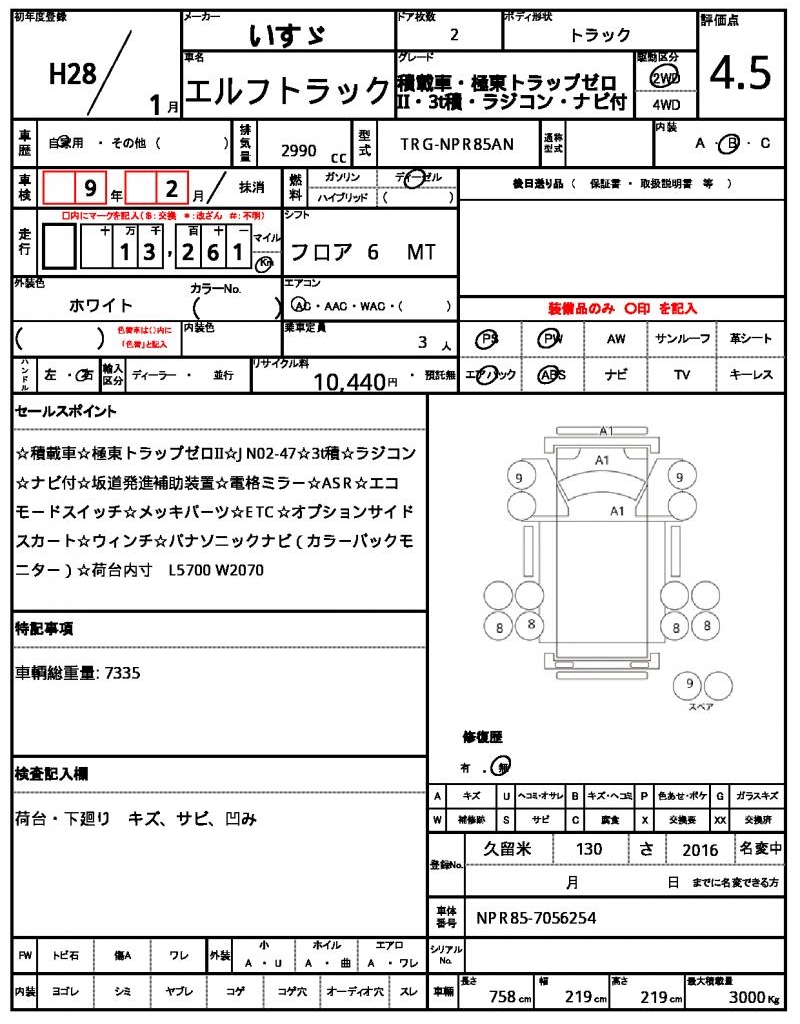 | VIN/Serial No. | NPR85-7056254 |