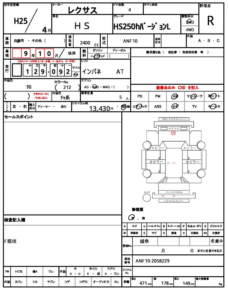 | VIN/Serial No. | ANF10-2058229 |