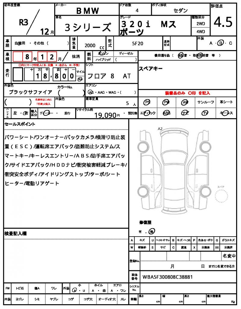 VIN/Serial No. WBA5F300808C38881