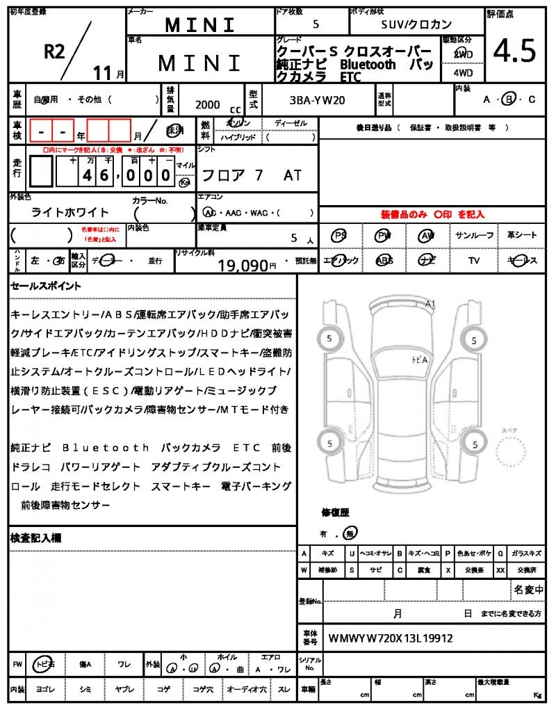 | VIN/Serial No. | WMWYW720X13L19912 |