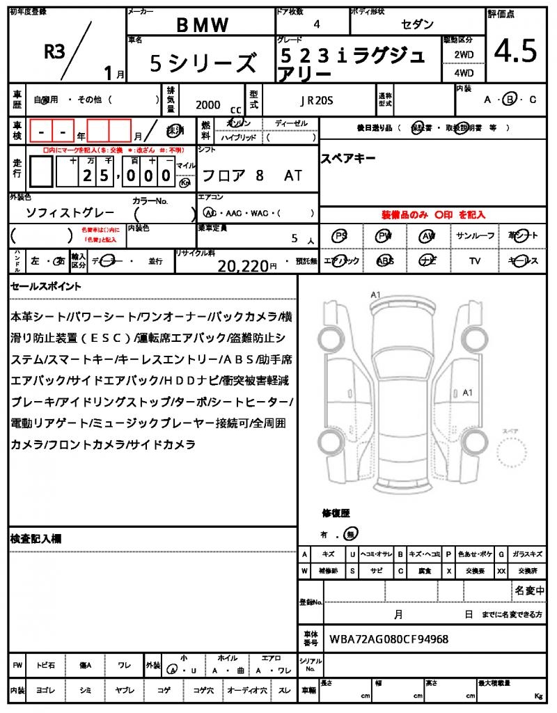 | VIN/Serial No. | WBA72AG080CF94968 |