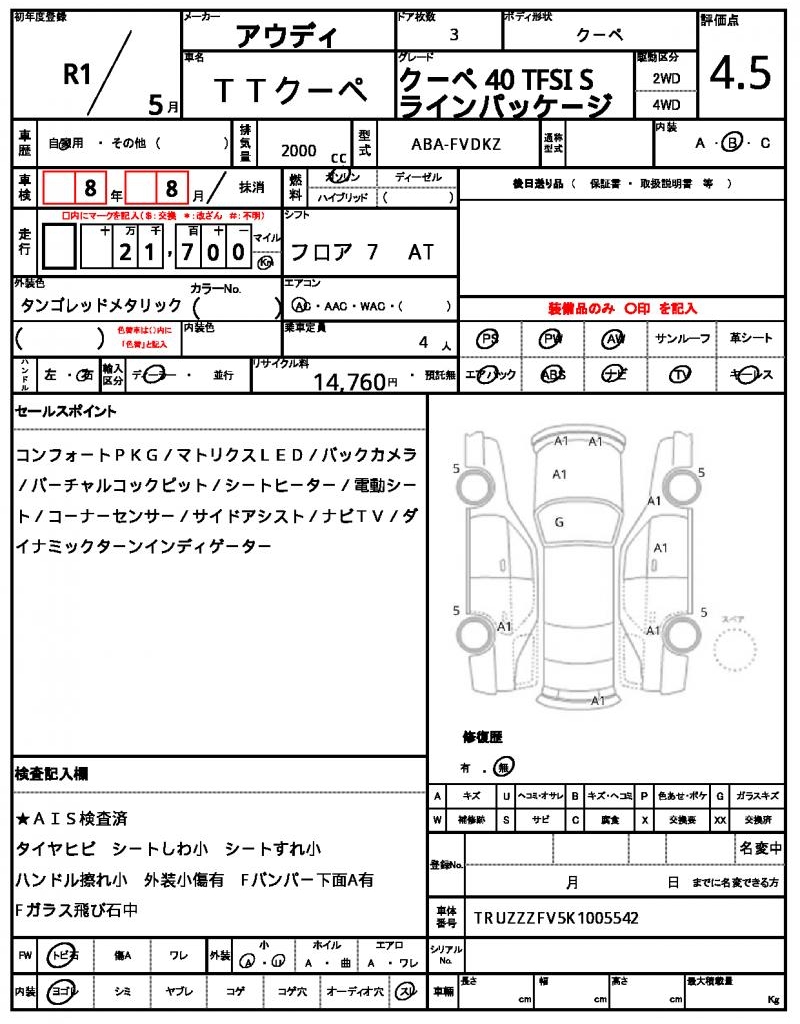 | VIN/Serial No. | TRUZZZFV5K1005542 |
