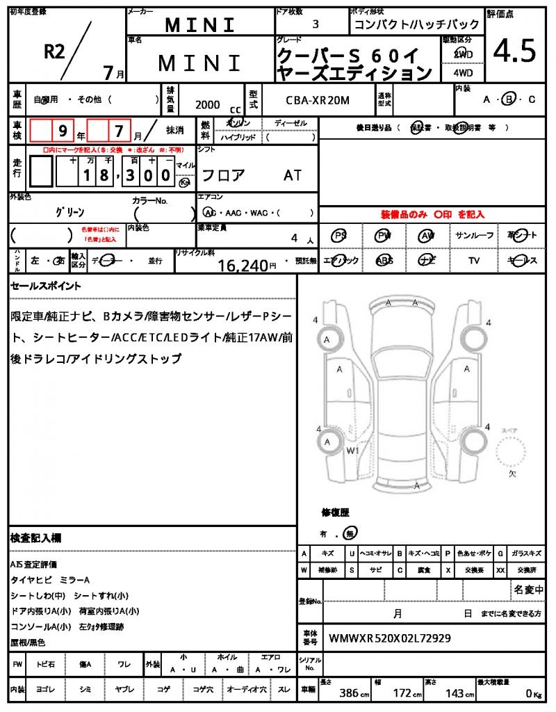 | VIN/Serial No. | WMWXR520X02L72929 |