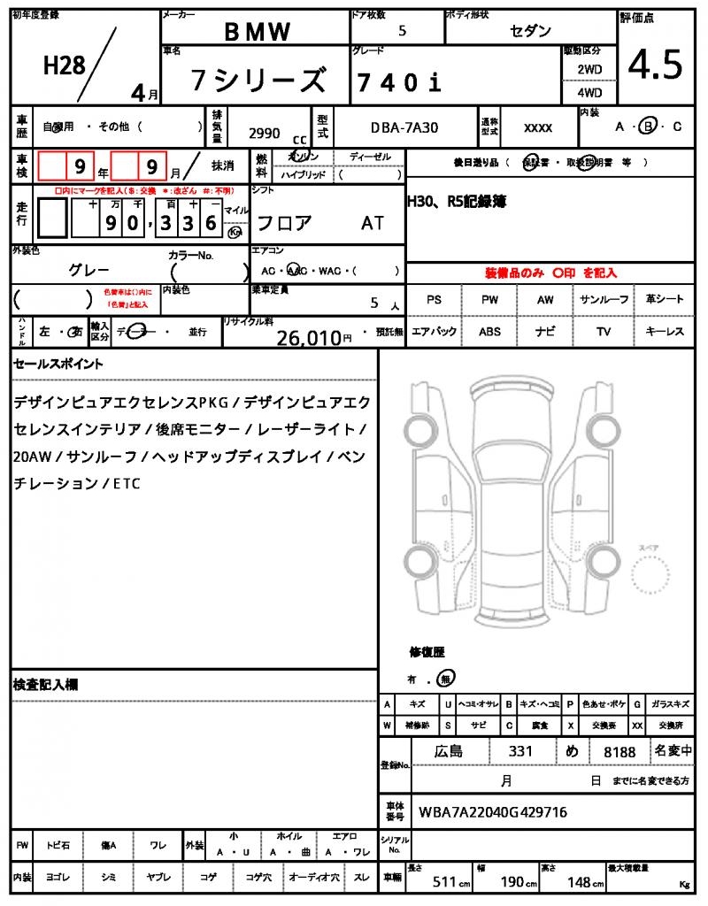 | VIN/Serial No. | WBA7A22040G429716 |
