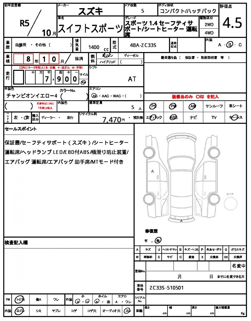 | VIN/Serial No. | ZC33S-510501 |