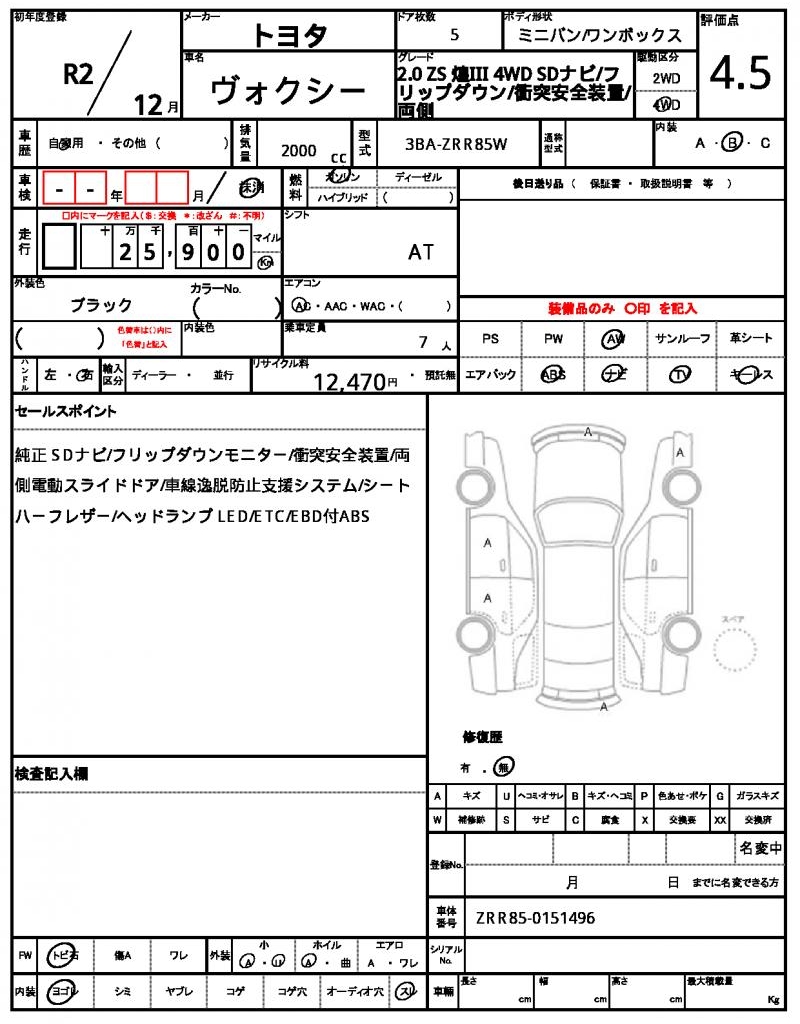 | Model code | 3BA-ZRR85W |